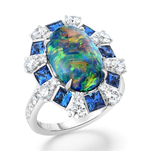 High-end jewelry piece with strong color contrast and precise craftsmanship.