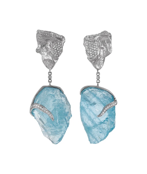 Jorge Adeler Women’s Raw Aquamarine and Diamond Earrings