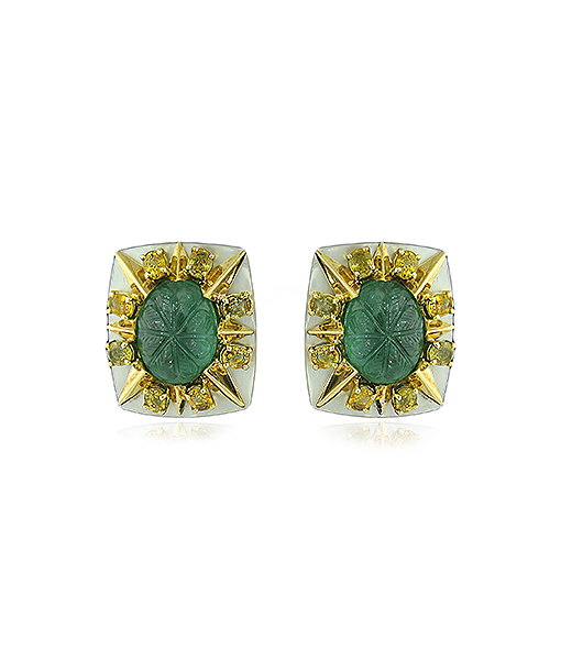 Tony Duquette Mother of Pearl and Carved Emerald Earrings