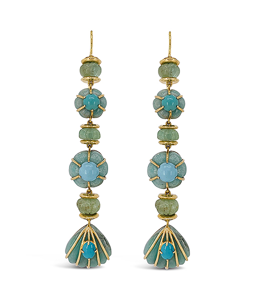 Tony Duquette Pale Emerald and Turquoise Earrings